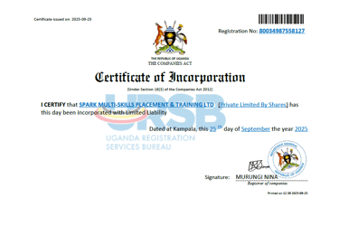 To connect licensed recruitment agencies across Africa with genuine and verified international job opportunities through ethical, transparent, and efficient facilitation — empowering both agencies and candidates to thrive. Spark Multi-Skills Placement & Training Ltd is committed to building trusted partnerships, ensuring compliance with labor standards, and creating a sustainable bridge between African talent and global employment markets.